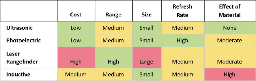 雖然聲音不受光或暗的影響,但聲音的速度會受到氣溫變化的影響。該溫度的任何劇烈變化都會極大地影響超聲波傳感器的精度。這可以通過測量溫度以更新任何計算來抵消,但這仍然是該技術的限制。