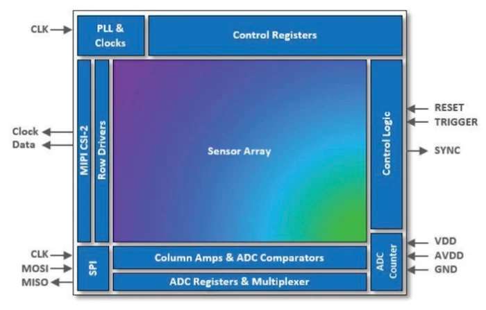 該接口包含一個 4 通道MIPI CSI-2輸出接口,以 1.5 Gbps/通道運(yùn)行,以及一個 SPI 40 MHz 控制接口。Hawkeye 在 120 fps 下使用低于 750 mW,工作溫度范圍為 -40 ℃ 至 +85 ℃(否則稱為工業(yè)應(yīng)用)。