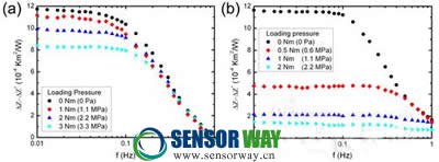 圖3 觀測到的熱阻增量隨不同負(fù)載壓力的變化曲線:(a)單層PVDF177薄膜及(b)三層 PTFE45薄膜樣品。