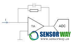 該傳感器需要使用TIA(Trans Impedance Amplifier)將電流信號轉(zhuǎn)成電壓信號,再進行模數(shù)轉(zhuǎn)換。由于信號的輸出電流較小,需要選用Ib(偏置電流<10pA)較小的精密運算放大器。
