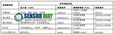表1: 信號調(diào)理要求VS氣體傳感器類型