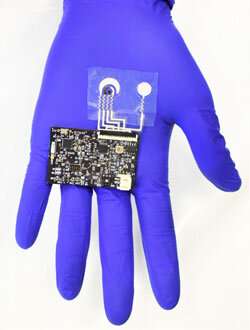 新的可穿戴設(shè)備由可粘貼到用戶皮膚上的粘貼片組成,其中包含刺激出汗的系統(tǒng)和旨在快速檢測出汗液中維生素C水平的電極傳感器。為此,該設(shè)備包括含有抗壞血酸氧化酶的柔性電極。當存在維生素C時,酶會將其轉(zhuǎn)化為脫氫抗壞血酸,所產(chǎn)生的氧氣消耗會產(chǎn)生由設(shè)備測量的電流。