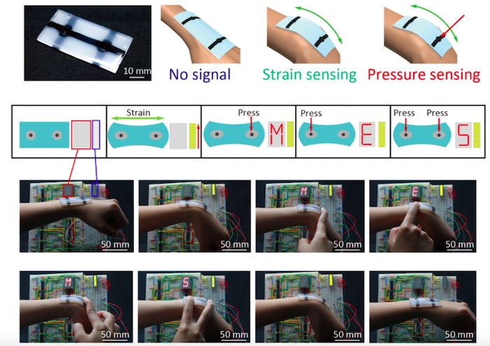 在此演示中,壓力和應(yīng)變感測(cè)由每個(gè)動(dòng)作獨(dú)立控制。圖片由《科學(xué)報(bào)告》提供