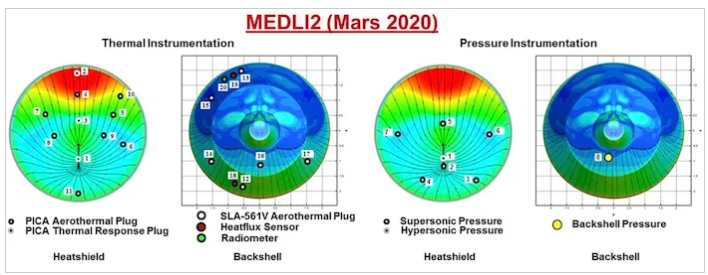 Perseverance隔熱板上的一套傳感器稱為MEDLI2,旨在測(cè)量流動(dòng)站的進(jìn)入,下降和著陸(EDL),以更好地協(xié)助未來(lái)的任務(wù)。