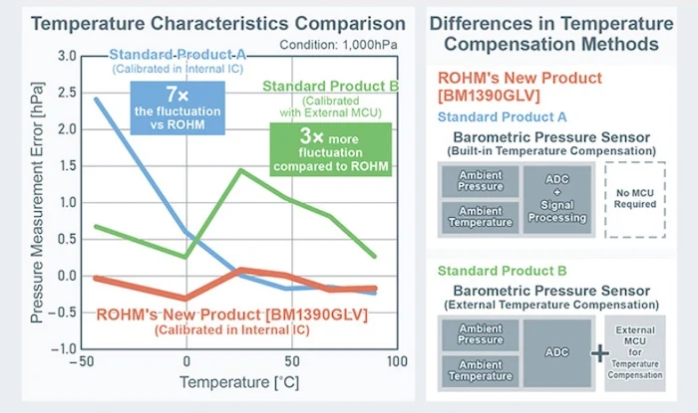 根據(jù) ROHM 的說法,BM1390GLV 采用專有的溫度補(bǔ)償算法來最大限度地減少溫度引起的誤差。