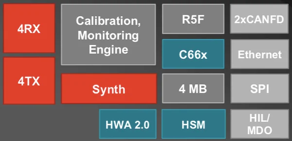 總之,一些重要的硬件產品包括 4 個 Rx 和 Tx 通道、一個雷達預處理硬件加速器塊、4 MB 片上存儲器以及一個內置校準和監(jiān)控引擎。由于這些改進,TI 表示與市場上的其他解決方案相比,AWR2944 的雷達分辨率提高了 33%,雷達范圍增加了 40%。增加的雷達范圍歸因于基于多普勒分多址 (DDMA) 的信號處理,這提高了 SoC 從更遠的地方檢測迎面而來的車輛的能力。