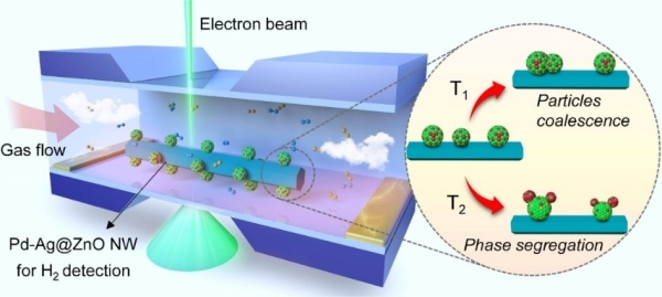 在半導(dǎo)體敏感材料表面修飾貴金屬催化劑是提升氫氣傳感器性能(如靈敏度)的有效方法。然而,半導(dǎo)體氣體傳感器的工作溫度高達數(shù)百攝氏度。在長期的高溫工作環(huán)境下,金屬催化劑的活性易衰減,引起半導(dǎo)體氣體傳感器的性能下降甚至失效,阻礙了該類傳感器的實用化。傳統(tǒng)的材料表征方法通常只能分析敏感材料失活前后微觀形貌、結(jié)構(gòu)及成分等的變化,缺乏在工況條件尤其是氣氛條件下原位表征敏感材料的能力,難以分析半導(dǎo)體氣體傳感器的失效機制。