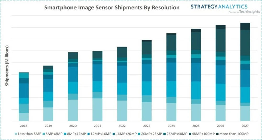 高像素圖像傳感器需求逐漸走高 來(lái)源:Strategy Analytics