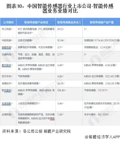 智能傳感器行業(yè)上市公司智能傳感器業(yè)務(wù)業(yè)績對比