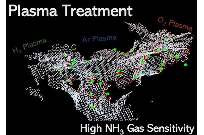 正如他們發(fā)表在《美國化學(xué)會應(yīng)用材料與界面》雜志上的最新論文所述,該團(tuán)隊(duì)研究了用不同氣體的等離子體處理石墨烯薄片,是如何以及為何能提高對有毒化合物氨氣()的檢測靈敏度。來自千葉大學(xué)的巖上崇吾先生和薬司俊也先生共同參與了這項(xiàng)研究并撰寫了論文。