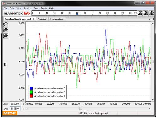 帶寬信息告訴用戶加速度計是否可以測量慢速或靜態(tài)加速度,并定義加速度計仍將保持精確的頻率上限。如果帶寬的較低范圍未達到0 Hz(稱為DC響應),則加速度計將無法像海洋環(huán)境中那樣測量靜態(tài)加速度,例如重力或緩慢振動(<2 Hz)。對于需要速度(通過積分加速度數(shù)據(jù))或位移(兩次積分)的應用,也需要直流響應加速度計。沒有直流響應的加速度計將具有固有的衰減功能,這將在數(shù)值積分期間(尤其是在長時間事件中)導致重大誤差。簡單的諧波運動計算器以獲取更多信息- 注意:enDAQ是Mide的一部分。