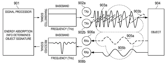 該專利的具體用途含糊不清,細(xì)節(jié)表明“發(fā)送/接收太赫茲EM波的電子設(shè)備正在變化,和/或在環(huán)境中反映太赫茲波的一個(gè)或多個(gè)物體的位置和/或方向正在移動(dòng)。 。”