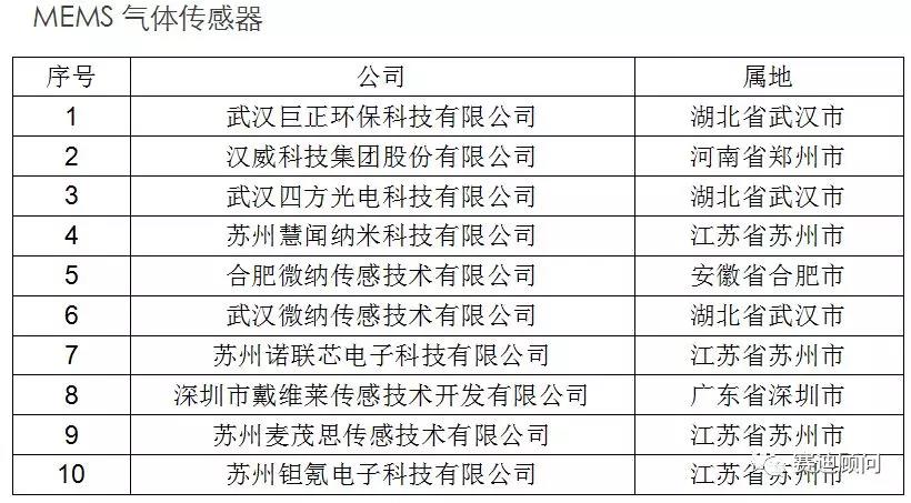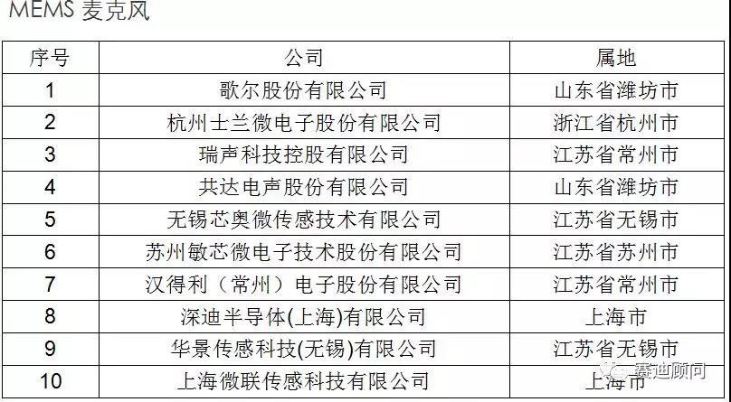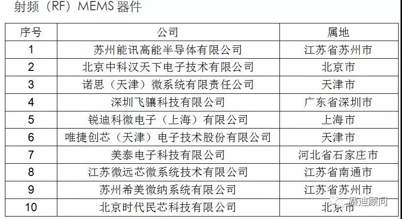 國內(nèi)MEMS細分領域優(yōu)秀企業(yè)(排名不分先后)