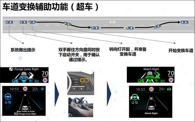 第三,智能交互界面。車輛的中控處有一塊大屏幕,可以展示3D實(shí)時(shí)路況。同時(shí),駕駛室內(nèi)的監(jiān)控系統(tǒng)將持續(xù)監(jiān)測(cè)駕駛員的注意力是否集中在道路上。系統(tǒng)根據(jù)3D高清地圖數(shù)據(jù)及路況信息實(shí)時(shí)評(píng)估道路及周邊環(huán)境,系統(tǒng)控制及時(shí)響應(yīng),依此判斷是否應(yīng)該建議變道。當(dāng)駕駛員按下開關(guān)同意該操作的按鍵后,將啟動(dòng)變道輔助。這一功能尤為重要,它將建立智能車輛與駕駛者之間的互動(dòng),增強(qiáng)兩者之間的信任。