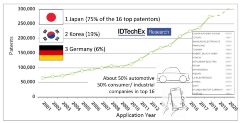實(shí)際上,傳感器技術(shù)的創(chuàng)新正在發(fā)展。市場(chǎng)分析師估計(jì),已針對(duì)汽車?yán)走_(dá),LiDAR,生物傳感器以及印刷和柔性傳感器等領(lǐng)域的應(yīng)用授予了80多項(xiàng)新專利。日本名列前茅,占16個(gè)頂級(jí)專利接受國(guó)的四分之三。三星電子是前五名中唯一的非日本公司,依次為佳能,豐田,松下和東芝。