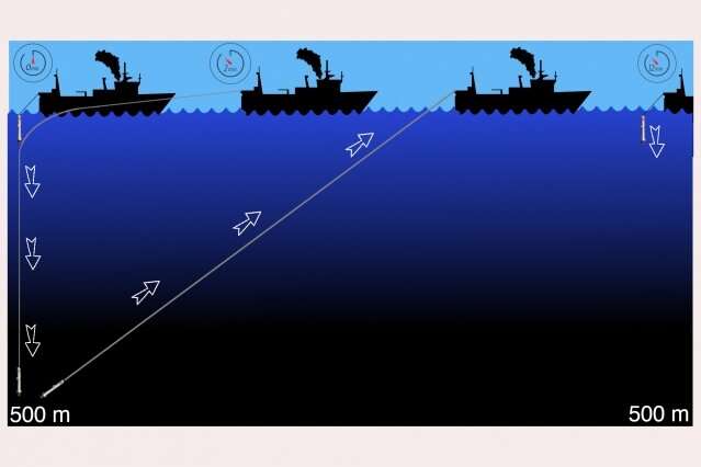最后,整個(gè)儀器都裝在一個(gè)鋁管中,設(shè)計(jì)成可通過(guò)一條長(zhǎng)線連接到船尾的絞盤(pán)上。隨著船舶的移動(dòng),團(tuán)隊(duì)可以將儀器掉落到舷外,并使用絞車以即使儀器移開(kāi)時(shí)儀器也能直接下降的速度來(lái)支付管線費(fèi)用。大約兩分鐘后,一旦到達(dá)約500米的深度,團(tuán)隊(duì)便搖動(dòng)絞盤(pán)將儀器拉回原位,以使儀器在12分鐘內(nèi)趕上船。然后機(jī)組人員可以再次放下儀器,這次離他們的最后一個(gè)放下點(diǎn)一定距離。