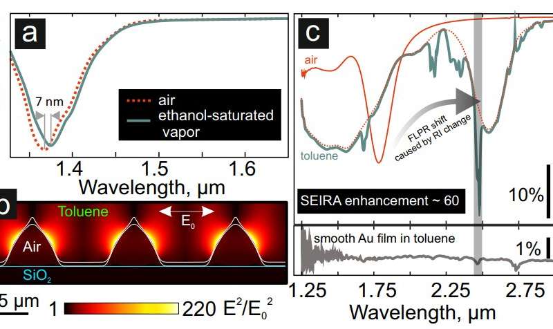 遠東聯(lián)邦大學(FEFU)的科學家與來自俄羅斯,日本和澳大利亞的同事一起開發(fā)了一種基于特殊設計的金膜的多功能傳感器,該金膜的表面包含飛秒激光印刷產(chǎn)生的數(shù)百萬個拋物線形納米天線。該傳感器識別痕量濃度的分子,并在液體和氣體環(huán)境中對其進行檢測?梢暂p松調(diào)整它以提供不同的方式,包括生物學研究,醫(yī)療和安全任務。相關研究發(fā)表在納米材料上。