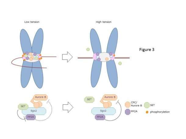 “自從1996年發(fā)現(xiàn)Aurora B激酶(Aurora B)以來,我們已經(jīng)發(fā)現(xiàn)Aurora B通過調(diào)節(jié)微管與動(dòng)粒體的附著來調(diào)節(jié)染色體,從而作為張力傳感器發(fā)揮了不可或缺的作用,并且蛋白磷酸酶2(PP2A)也起作用通過控制與Aurora B相關(guān)的染色體排列來作為張力傳感器!睎|京早稻田大學(xué)的Yasuhiko Terada教授說!暗,該系統(tǒng)極其復(fù)雜,其分子機(jī)理還沒有被很好地理解。”
