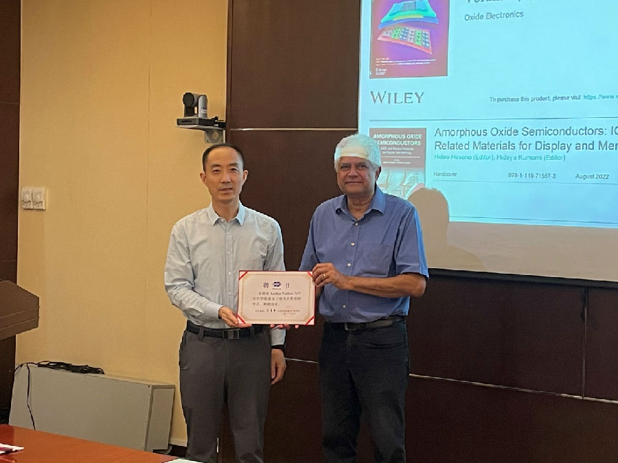 會上,人事處處長王雷向Arokia Nathan教授頒發(fā)了“中國科學(xué)院微電子研究所客座研究員”證書。