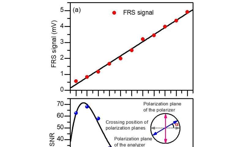 FRS信號(hào)和信噪比作為分析儀角度的函數(shù) α。