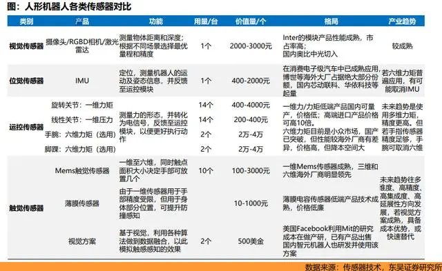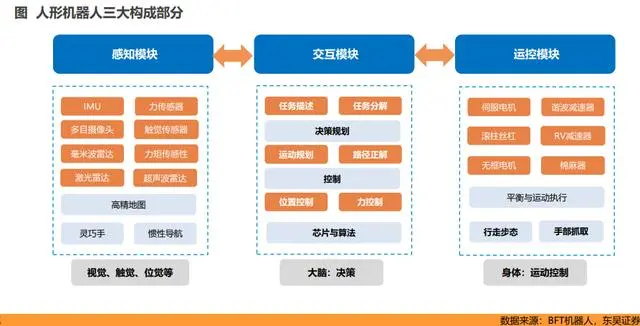 東吳證券曾朵紅在2月26日的研報中表示,人形機(jī)器人包括感知模塊、交互模塊、運控模塊,其中感知模塊類似于人類的各類感官神經(jīng),提供視覺、位覺、 觸覺、力覺等信息,分布于人形機(jī)器人的各類關(guān)節(jié)中,提供運控規(guī)劃準(zhǔn)確性,是人形機(jī)器人具身智能的基礎(chǔ)。隨著人形機(jī)器人未來有更準(zhǔn)確的感知和更有效的交互,感知模塊成長空間廣闊。