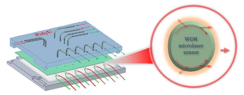 新型聚合物回音壁模式微激光傳感器更易集成到芯片實驗室設備中,有望實現疾病早期診斷。圖片來源:香港理工大學張阿平(A. Ping Zhang)