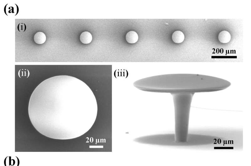 為解決這一問題,研究人員設計了一種帶有利馬松形懸浮微盤的回音壁模式微激光傳感器。該設計賦予傳感器低激光閾值和定向光發(fā)射能力,提升了效率并使芯片集成更具可行性。