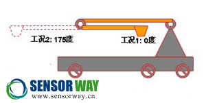所有的云梯消防車都有一定負(fù)載能力,只有在其負(fù)載范圍內(nèi)才能有效確保工作狀態(tài)的安全性。因此確定特定條件下的負(fù)載能力非常關(guān)鍵。通過傾角傳感器對(duì)在云梯伸縮臂在不同的舉升高度時(shí)的傾斜角度進(jìn)行測(cè)量和監(jiān)控,并根據(jù)伸縮臂的長度就能確定在不同高度和傾斜角情況下云梯相應(yīng)的負(fù)載能力,確保不會(huì)發(fā)生超重。同時(shí)當(dāng)負(fù)載超過這一額定值時(shí),云梯消防車的安全系統(tǒng)能及時(shí)發(fā)出報(bào)警信號(hào),及時(shí)采取措施避免超重發(fā)生傾覆。而在路面非平整地帶,還可以通過裝在云梯底部平臺(tái)的傾角傳感器對(duì)車體自身的傾斜角進(jìn)行測(cè)量進(jìn)行修正,保證傾角測(cè)量的真實(shí)性。