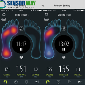真正神奇的地方在于智能手機的app。應用通過顯示詳細的熱圖告訴你雙腳的受壓點,應用還顯示雙腳著地持續(xù)的時間、跑步節(jié)奏、步數(shù)、步幅和速度的詳細信息。