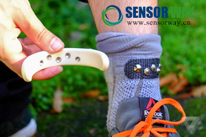 Sensoria是一個U型腳鐲,通過5個磁銅釘吸在一個特制的跑步襪上。襪子底部的傳感器可以檢測雙腳的著地點以及著地持續(xù)的時間。腳鐲內(nèi)的CPU可以分析來自傳感器的數(shù)據(jù)。腳鐲很輕,容易讓人忘記它的存在。路人也不容易發(fā)現(xiàn)它的存在,除非路人走近看。