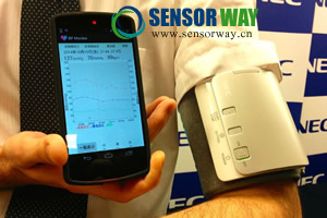血壓表,也稱血壓測量計,通過給袖帶充氣,使之膨脹壓縮動脈血管,然后測量血流量。NEC樣機(jī)使用了壓力傳感器和振動傳感器來測量血壓。