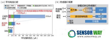 今后,為了能利用10mAh的紐扣電池連續(xù)驅(qū)動(dòng)兩周,計(jì)劃將消耗電流降至30μA以下。