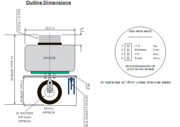 ![]() | NX1一氧化氮傳感器 | 0.05 ± 0.01 µA/ppm | 0-5000ppm |